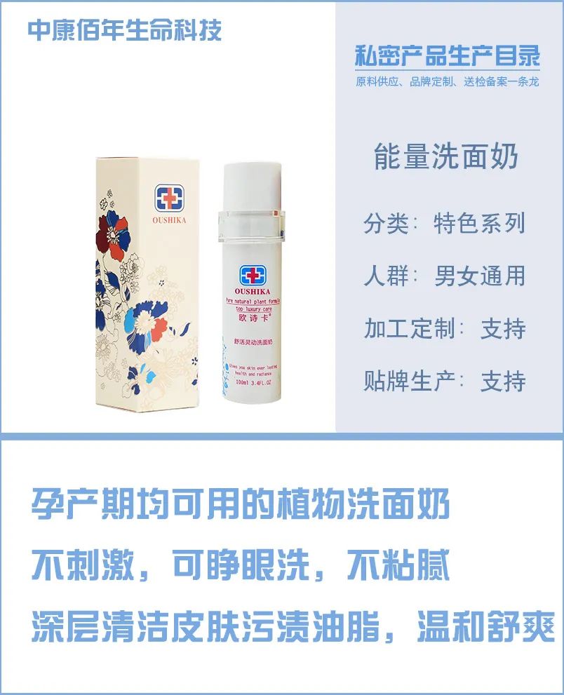 产品:能量洗面奶 特性:本品对大肠杆菌、金黄色葡萄球菌、白色念珠菌有较高的抑菌作用,在清洁时能有效防止细菌感染 规格:展示样品为100ml(可根据定制需求做成各种包装) 使用方法:挤压适量打出泡沫,清洁脸部即可。